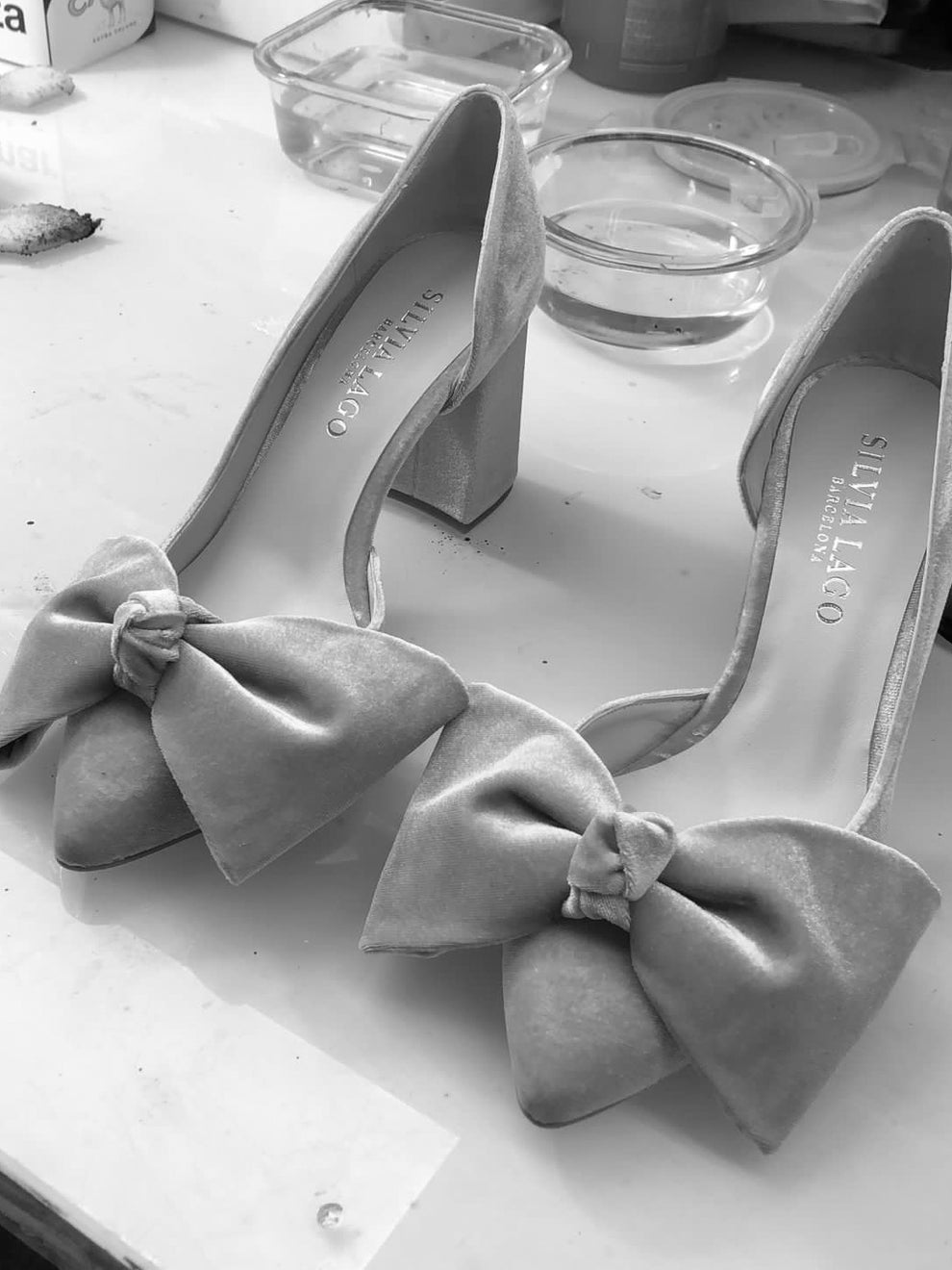 On her wedding day, the Duchess of Westminster wore the Valentina pumps in riviera velvet by Silvia Lago.