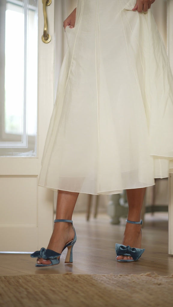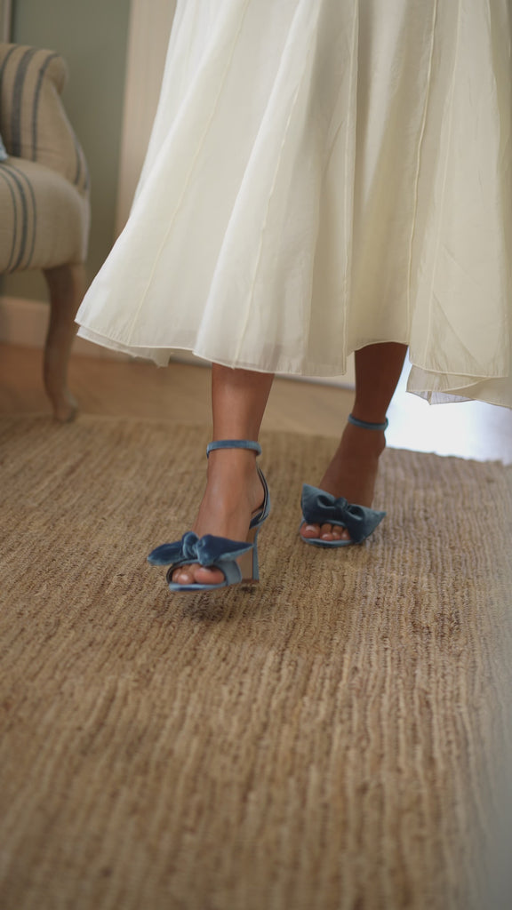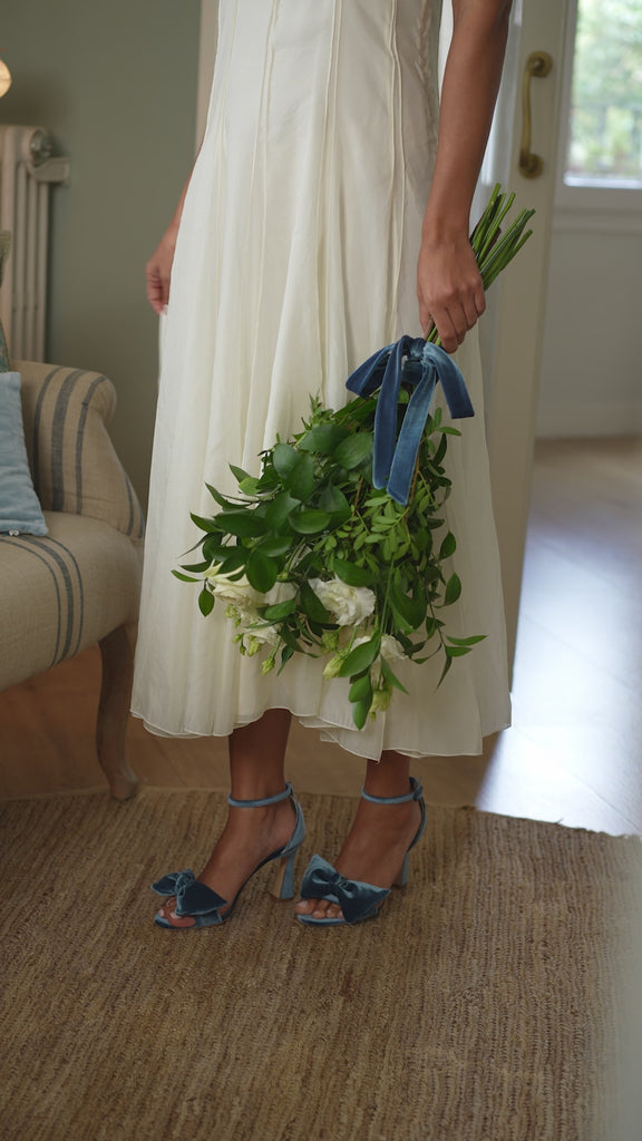 Loved by brides and cherished by guests, the Alexandra sandals with its graceful trapeze heel and statement bow are designed to make every step unforgettable.