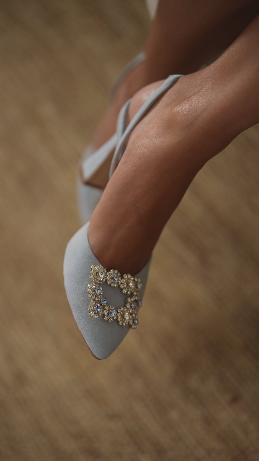 At the center, a sparkling crystal-embellished brooch catches the light, giving the shoe its dreamy, feminine allure. Perfect for brides who want a sweet yet sophisticated detail, or for stylish women who adore timeless beauty, these pumps are made to shine on every special occasion.
